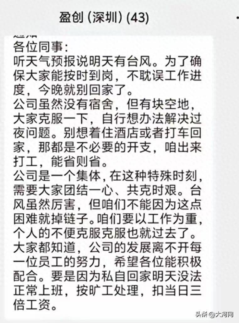 △网传有公司在台风期间不让员工回家,有关部门表示会尽快核实。图/网络